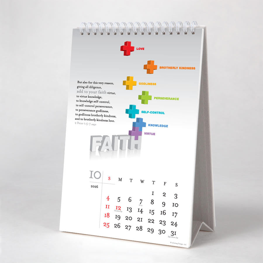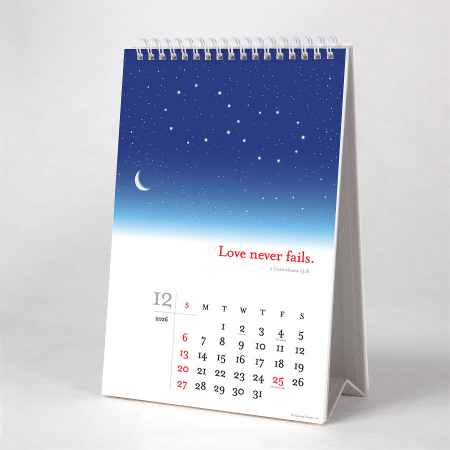 This thoughtfully curated calendar features selected works from our Faith, Hope, and Love series, inviting reflection on these three core elements of Christianity throughout the year and encouraging the sharing of God’s living Word in daily life.